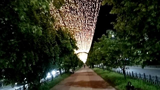 Аллея ночью вдоль улицы Кирова. Город Калуга. Красота !