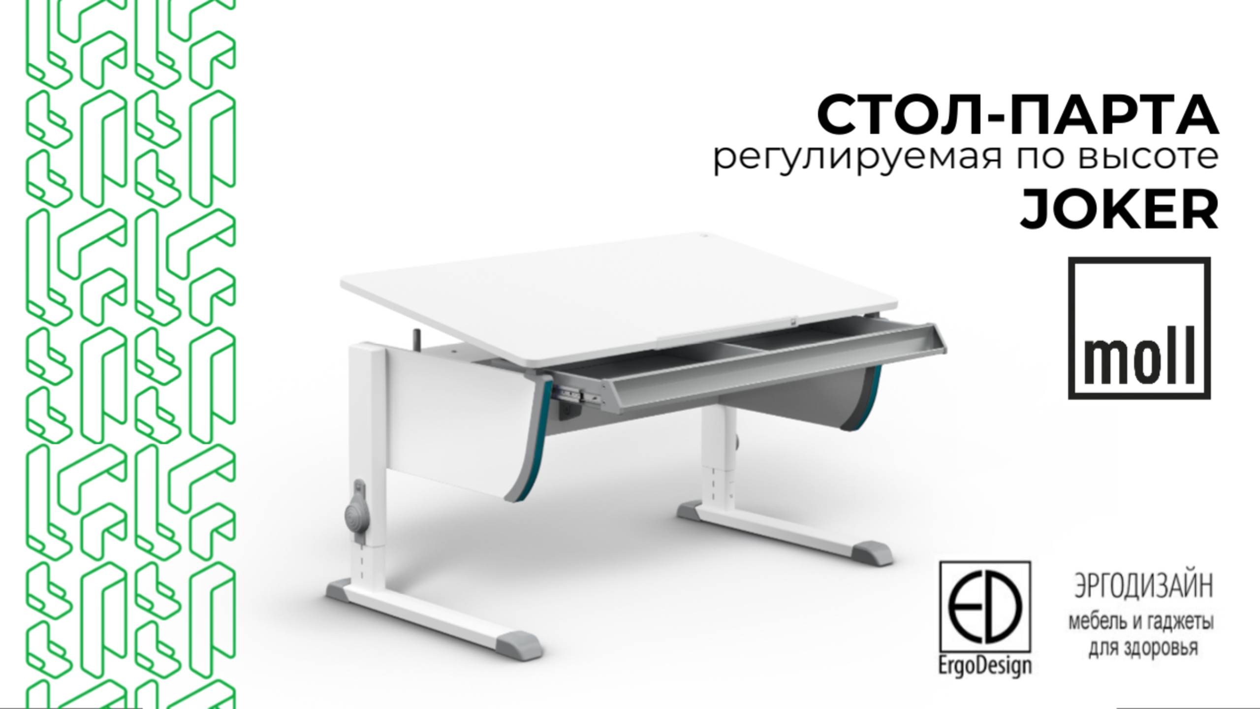 Парта Moll Joker | Немецкий школьный стол, растёт с ребёнком, сохраняет осанку и здоровье спины
