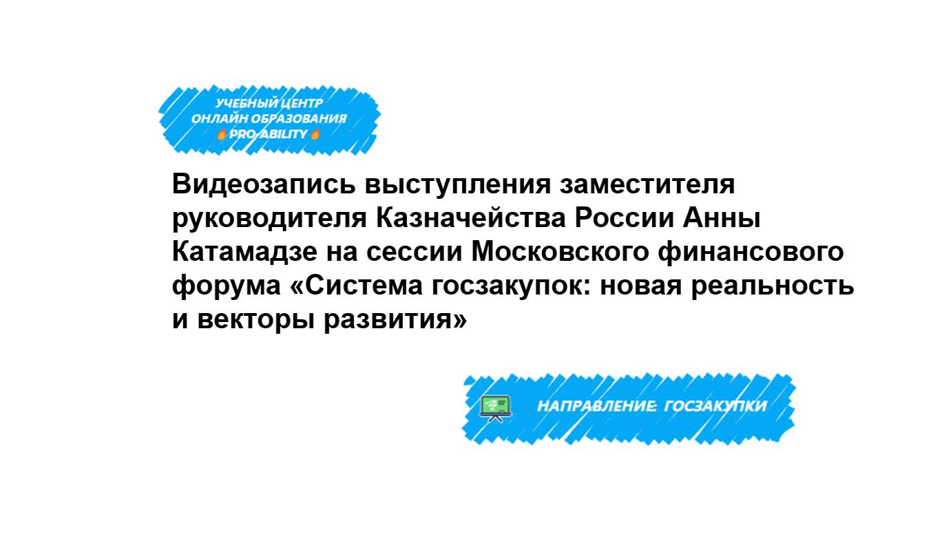Видеозапись выступления заместителя руководителя Казначейства России Анны Катамадзе на сессии Московского финансового форума «Система госзакупок: новая реальность и векторы развития» Курсы повышения квалификации и профессиональной переподготовки Pro-ability.ru дает возможность в простой форме получать знания, которые упростят работу и высвободят время. Про-тендеры.рф - справочная система Свежие изменения в законодательстве, судебные решения и практика ФАС. Материалы подготовлены тендерными экспертами. С нами уменьшите риски ошибок и получите время на по-настоящему значимые решения