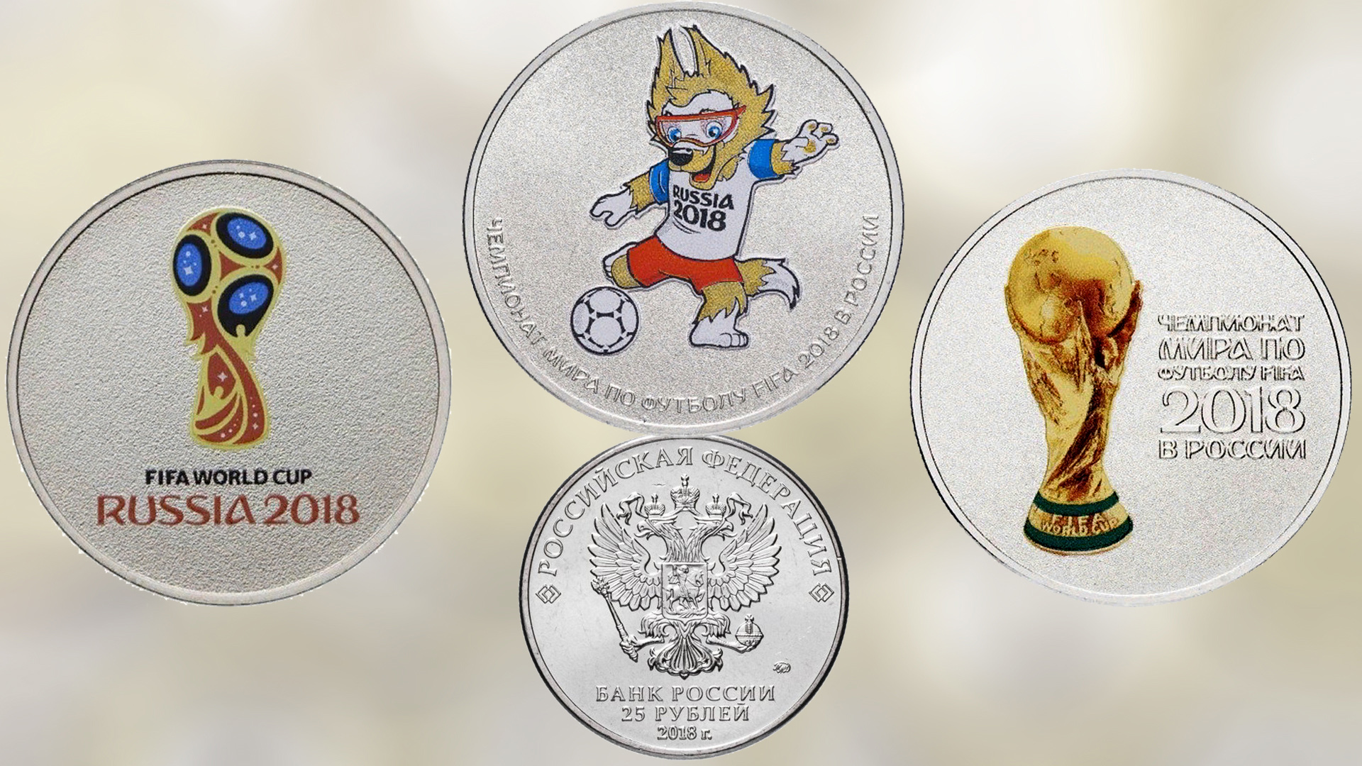 Монеты 25 рублей ЧМ по футболу в России 2018 года в цветном исполнении.