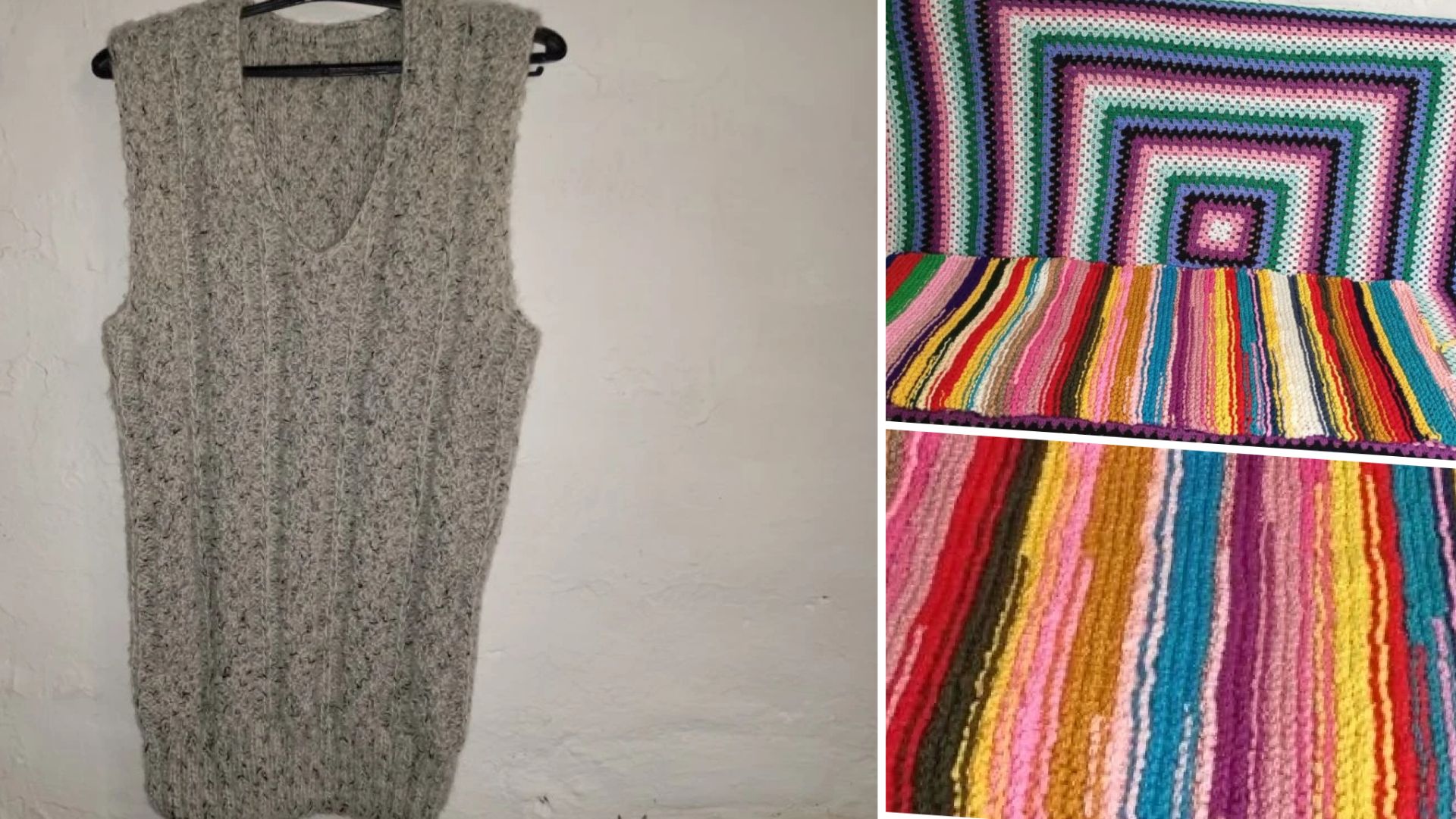 Готовые работы. Жилет довязала и коврик-дорожку