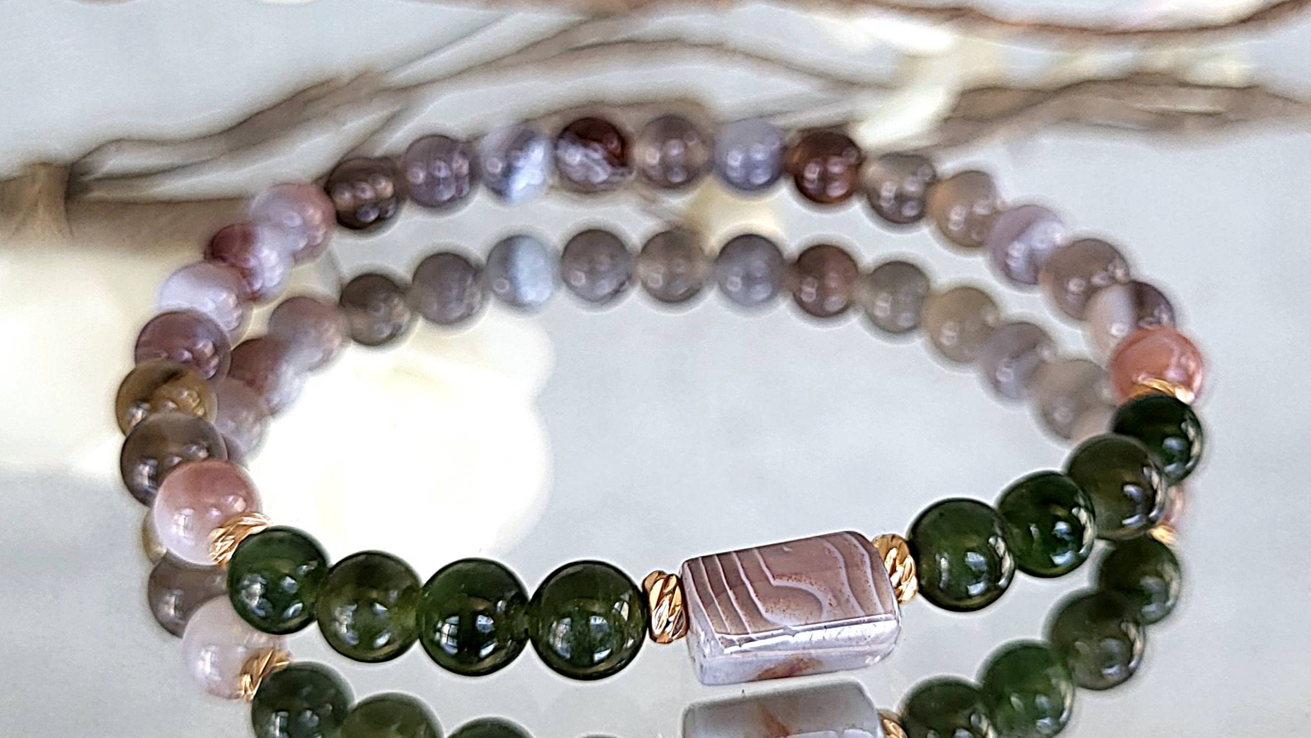 Браслет из агата бразильского, нефрита