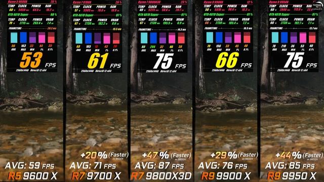Ryzen 5 9600x vs 7 9700x vs 9800x3d vs 9 9900x vs 9 9950x / Test in 8 Games / 1440p RTX 4070 Super