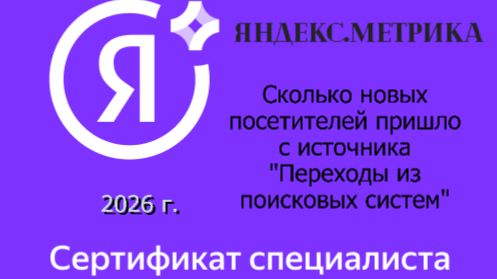 Сертификация специалистов по Яндекс.Метрика.2026 Тест: Сколько новых посетителей пришло с источника "Переходы из поисковых систем"