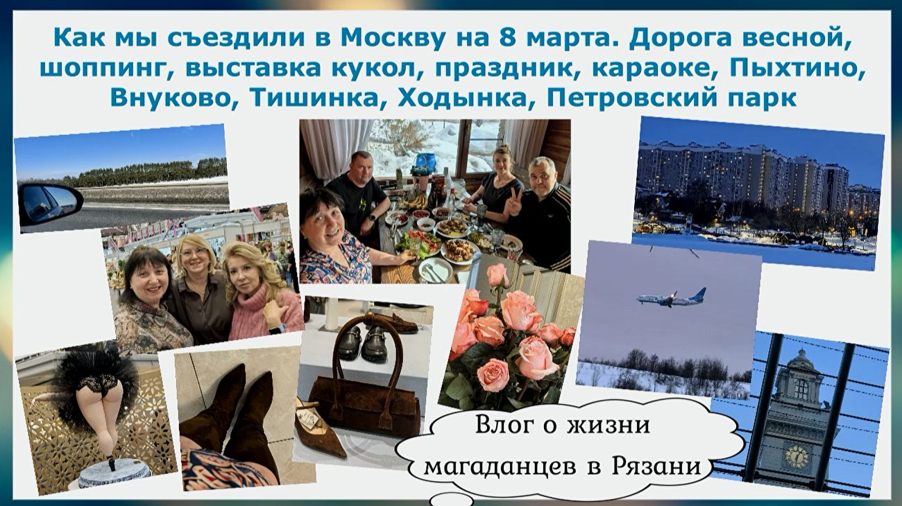 Как мы съездили в Москву на 8 марта. Дорога весной, шоппинг, выставка кукол, праздник, караоке, прогулки по Москве - Пыхтино, Внуково, Пыхтинский пруд, Тишинка, Ходынка, Петровский парк. Наши впечатления от поездки. На мартовские праздники мы ездили на 4 дня в Москву, встретиться с друзьями и погулять по Москве. Ведь мы не были в столице, как приехали с последнего путешествия в Беларусь в октябре 2025 Плейлист Минск и Смоленск https://youtube.com/playlist?list=PLOXFdJn8xE45wBUFoXw6aoM6_MwicAym5&si=tGmASDyQZrMv9oMy Ссылки на наши российские ресурсы ✅Канал рутуб rutube.ru/.../26492427/ ✅Дзен dzen.ru/...f53aef1fff... ✅Все видео ВКонтакте vk.com/club226856756 / @anzhelina_jolie_ ✅Моя творческая мастерская в ВК vk.com/...c212000538 ✅Играю в куклы в ВК vk.com/club224828421 ✅Готовим с Джоли в ВК vk.com/club223193761 ✅Телеграмм для общения подписчиков и друзей Анжелина&Компания t.me/...N1Kd0zOTg6 - группа закрытая, стучаться! ✅Телеграмм новостной со ссылками на все публикации t.me/...osim_chaim ✅Телеграмм Шьем с Анжелиной Джоли t.me/sewing_jolie ✅Телеграмм МИР КУКОЛ t.me/...mld4yh_y8d ✅Телеграмм Мода/стиль/идеи/шитье t.me/...dei_sewing ✅Мои публикации на бейбиках про кукольное хобби babiki.ru/...akharchuk/... ✅Наша кукольная группа в телеграмм https://t.me/Qnpa6Jmld4yh_y8d ✅Наша кукольная группа в Максе, так как ТГ сильно блокируют и мы частично переехали сюда ✅Играю в куклы в ВК https://vk.com/club224828421 ✅Мое шитье и рукоделие в ВК https://vk.com/public212000538 ✅В ТГ https://t.me/sewing_jolie ✅и мое шитье в Макс https://max.ru/join/pRTrXq9sMB7Qc7O-N8t2d6VDO-ujAZafTR5UhAlUL3Y ✅Мой основной канал ютуб Анжелина Калейдоскоп Жизни https://www.youtube.com/@anzhelina_magadan_ryazan/videos Мой швейно-кукольный канал https://www.youtube.com/@UCNqruso0nDyml3Fp5YYLlug ✅Основной ютуб www.youtube.com/...ryazan/vid.. ✅Ютуб Шьем с Анжелиной Джоли www.youtube.com/...ie_/videos Главные плейлисты тут, на ютубе, у кого он еще открывается: ✅Жизнь магаданцев в Рязани https://youtube.com/playlist?list=PLOXFdJn8xE45niyZYW.. ✅Изучаем Рязань https://youtube.com/playlist?list=PLOXFdJn8xE447Ow64A.. ✅Наша подработка авто курьером в Магните https://youtube.com/playlist?list=PLOXFdJn8xE47KpPXh9.. ✅Наши пенсионерские путешествия https://youtube.com/playlist?list=PLOXFdJn8xE45WRX3lL.. ✅Дачные хлопоты https://youtube.com/playlist?list=PLOXFdJn8xE46sLEbTc.. ✅Мой Магадан https://youtube.com/playlist?list=PLOXFdJn8xE45ECLh-B.. Если желаете поблагодарить меня за мою работу, поддержать мой канал и мое хобби - карта Сбербанк: 2202 2067 0645 4373 - буду очень признательна всем, кто ценит этот нелегкий труд! QR-код для перевода онлайн Сбербанк в конце почти каждого видео. Спасибо за любую поддержку! С уважением, Анжелина. Не забудете нажать на подписку , если еще не подписаны, и на колокольчик, чтобы не пропустить новые видео на канале, а так же на ракету 🚀, если смотрите видео на рутубе - это важно для развития канала.