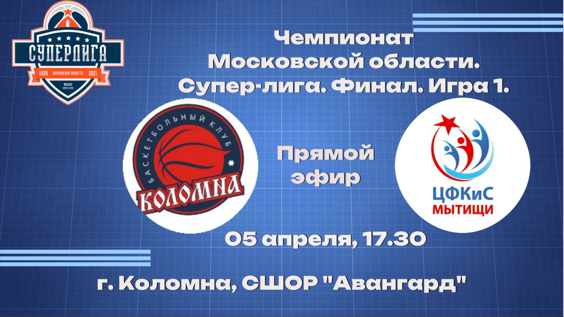 5 апреля 17:30, г. Коломна, СШОР "Авангард" Чемпионат Московской области. Супер-лига. Финал. Игра 1.