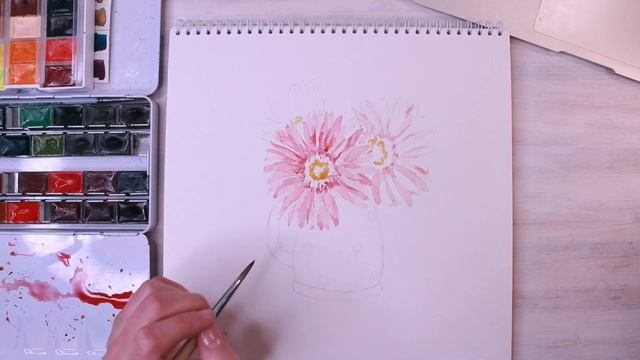 Ботаническая акварель #6. Розовый монохром. Цветы в кружке ⧸ Speed PaintБотаническая акварель #6. Ро