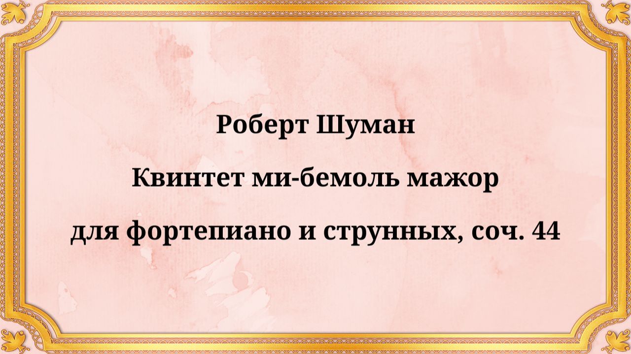 Роберт Шуман Квинтет ми-бемоль мажор для фортепиано и струнных, соч. 44