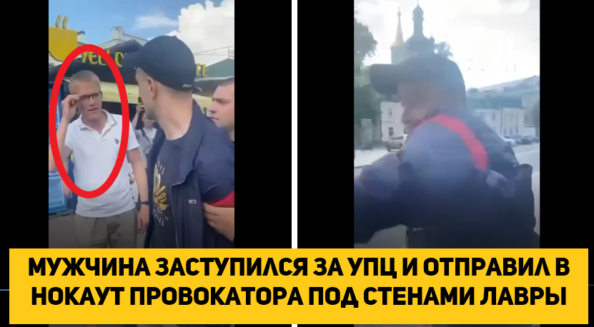 Мужчина заступился за УПЦ и отправил в нокаут провокатора под стенами Лавры