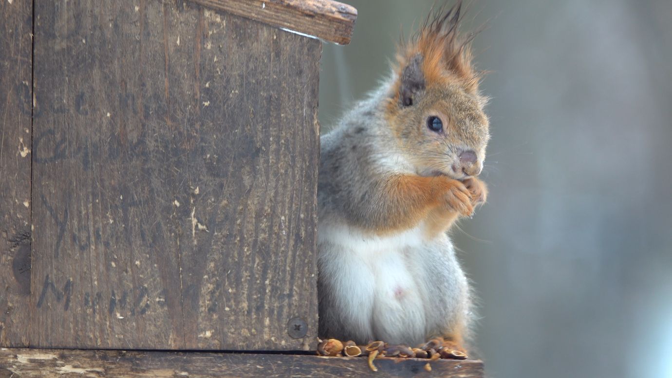 Дождь. Две белки. Зарисовка