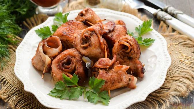 Шашлычки на сковороде. ЖАРЕНЫЕ РУЛЕТИКИ ИЗ СВИНИНЫ С БЕКОНОМ