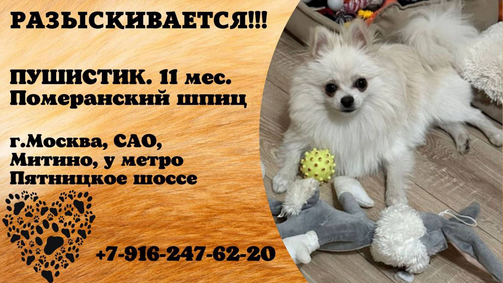 Пропала собака! ПУШИСТИК. 11 месяцев. Померанский шпиц. г.Москва, САО, Митино