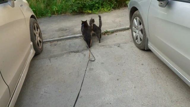 Фото прогулки котиков в новом месте, довольны.