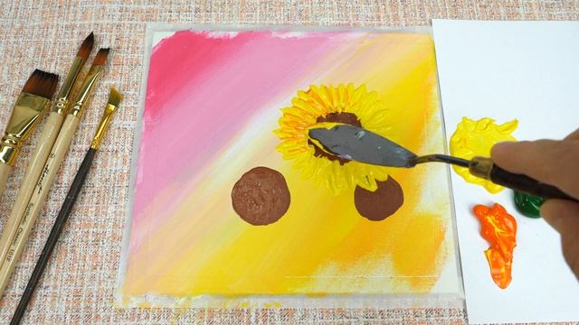 Подсолнухи Акриловая живопись на холсте Шаг за шагом Легкое искусство