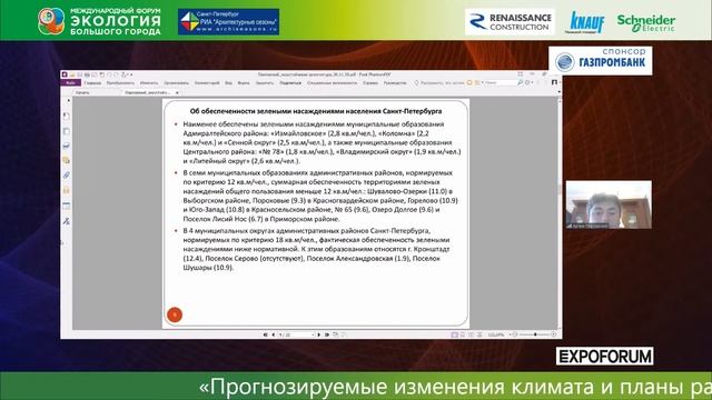 Артем Павловский, начальник отдела ГКУ «Научно-исследовательского и проектного центра Генерального плана Санкт-Петербурга» рассказал о прогнозируемых изменениях климата и о климатической стратегии развития приморских агломераций»