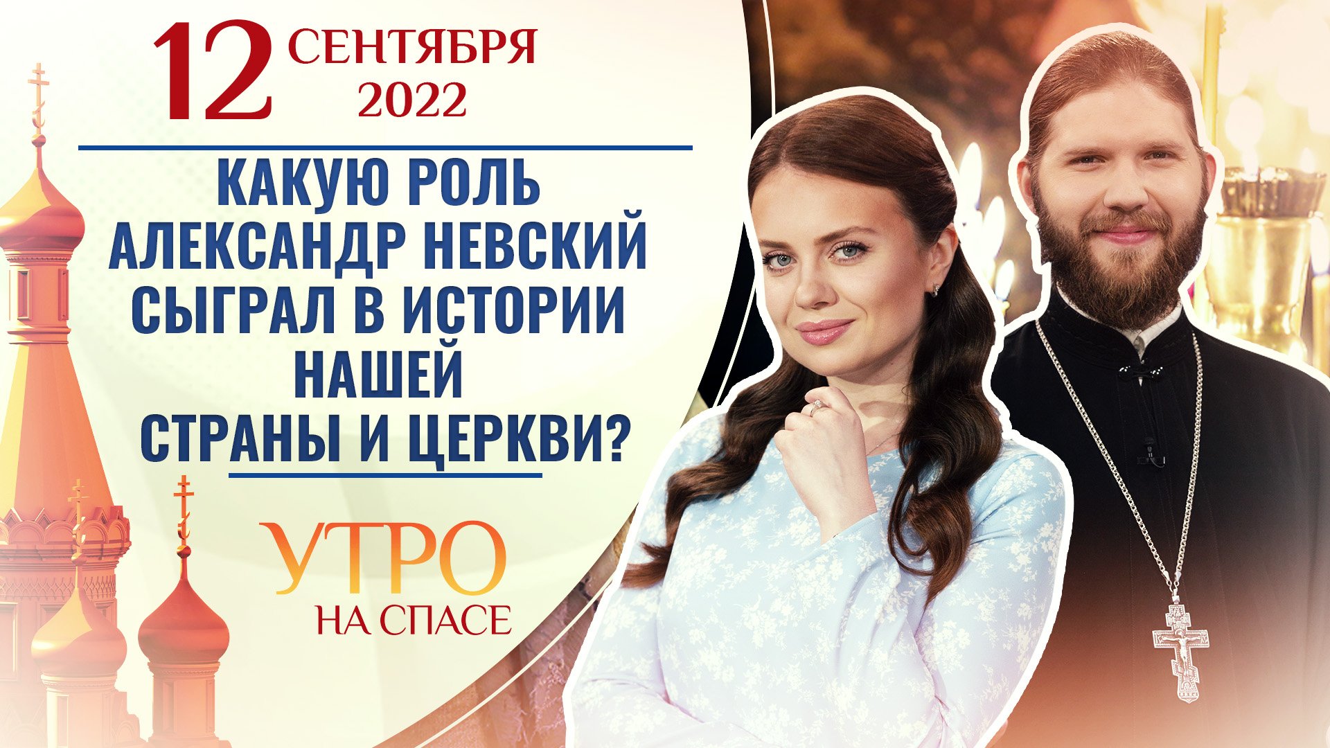 ⭕️ Подписывайтесь на наш RuTube канал https://rutube.ru/channel/23868813/ ? Доброе утро! Сегодня 12 сентября, понедельник! Церковь молитвенно чтит память благоверного князя Александра Невского! С Богом - в новый день! ? В день памяти Александра Невского обсудим, какую роль сыграл великий полководец в истории нашей страны и Церкви? Несостоявшееся венчание в Антарктиде! Что же помешало совершить Таинство и где оно все же произошло, расскажет автор и исполнитель песен Амария Рай. Зачем супруги Константин и Мария Кокора организовали курсы любви и радости для молодежи? Тяготы и лишения военных лет. О своих родителях и детских годах в блокадном Ленинграде расскажет народный артист России поэт Илья Резник. Личная встреча с Богом. Как молодой человек, который хотел поступать в Военно-медицинскую академию Санкт-Петербурга оказался абитуриентом Одесской духовной семинарии? ? Обо всем этом мы поговорим в начале нового дня - в эфире программа «Утро на Спасе».