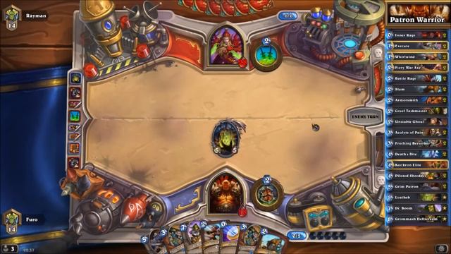 Hearthstone Deck - Constructed / Ranked Brian Kibler's Grim Patron Warrior Deck & Decklist Buy Steam Gift Cards: http://amzn.to/1Qn0lV5 Potential: up to Legend The latest Grim Patron Deck of Hearthstone Pro Player Brian Kibler. Enjoy! Any more questions? Just post a comment below and I`m glad to help you. Playlist with more Hearthstone Decks: https://www.youtube.com/playlist?list=PL5Rrj6JuiqmqUy3Svmv6JRjq-jQseTjSg --------------------------------------------- Make sure to comment, like, share, and subscribe if you haven't! Feedback appreciated! Twitch: http://www.twitch.tv/furo_ Twitter: http://www.twitter.com/followFuro GamesRocket: http://goo.gl/YK9czK Amazon.com: http://amzn.to/1TKO3M8 Amazon.de: http://goo.gl/ah8duA G2A: https://goo.gl/mnyZPT GreenManGaming: http://goo.gl/oVWj8s (Get 20% off with Voucher: GREENM-ANGAME-R20FF) Thanks for watching! ------------------------------------------- Decklist [Mana] Card Name Warrior [0]Inner Rage 2x [1]Execute 2x [1]Whirlwind 2x [2]Fiery War Axe 2x [2]Battle Rage 2x [2]Slam 2x [2]Armorsmith 2x [2]Curel Taskmaster [3]Frothing Berserker 2x [4]Death's Bite 2x [4]Kor'kron Elite [8]Grommash Hellscream Neutral [2]Unstable Ghoul [3]Acolyte of Pain 2x [4]Piloted Shredder 2x [5]Grim Patron 2x [5]Loatheb [7]Dr. Boom
