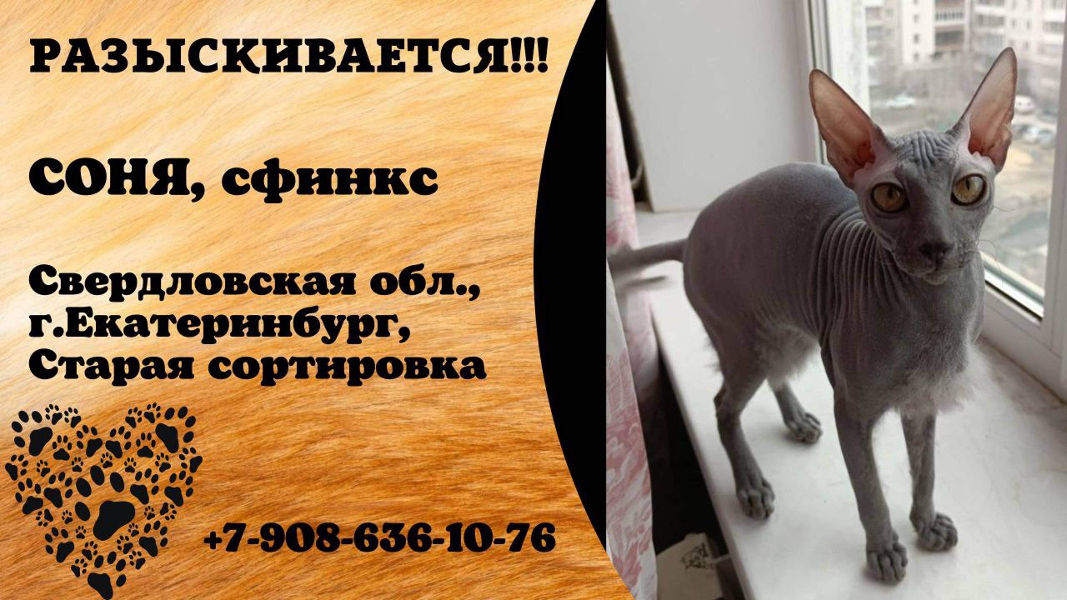 Пропала кошка!СОНЯ. Сфинкс. Свердловская обл, г.Екатеринбург