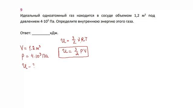 10 кл тест внут энергия задача 9