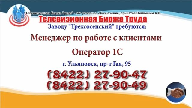 Вакансии и телефоны прямых работодателей в специализированной программе по трудоустройству "Телевизионная Биржа Труда" - г.Ульяновск