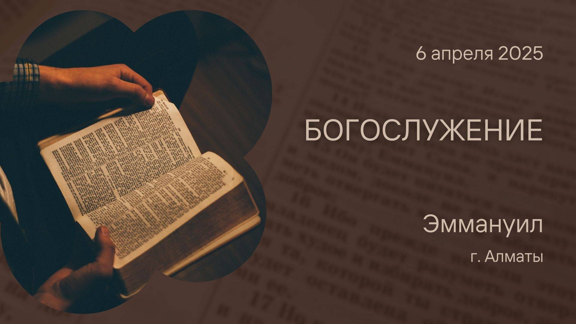 Богослужение 6 апреля – Церковь Эммануил г. Алматы (прямая трансляция)