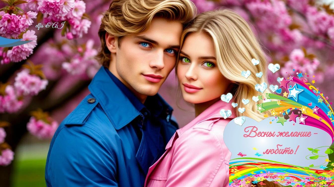 🌷👱🏻♂️💖~ ВЕСНЫ ЖЕЛАНИЕ — ЛЮБИТЬ! ~💖👸🏼🌺 /ДУЭТ/ © Copyright: Надежда Бурцева -4, 2013 Свидетельство о публикации №113040605796 Стихи, промпт, мастеринг песни: Надежда Бурцева elfis Музыка, вокал: AI Иллюстрация: промпт к генерации AI к песне, авторский коллаж Надежды Бурцевой