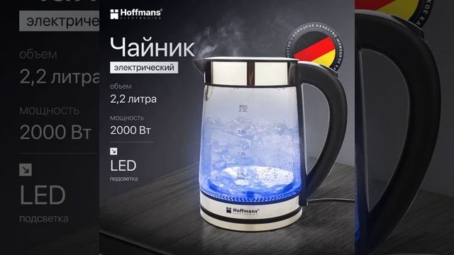 Hoffmans чайник электрический стеклянный с подсветкой, электрочайник