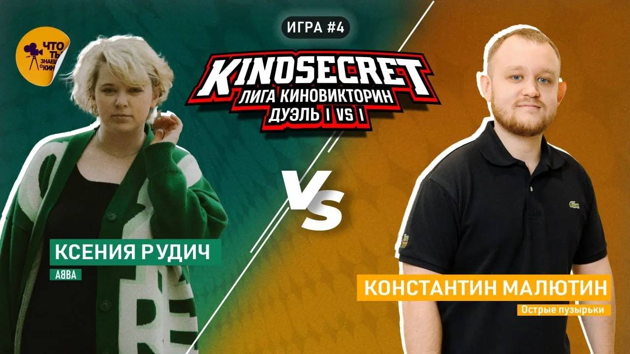 Лига КиноВикторин - большой проект, который объединяет киноманов со всего мира. Одним из форматов Лиги является игра КиноСекрет.Дуэль. КиноСекрет.Дуэль - это игра в которой 2 участника выясняют кто из них лучше всего разбирается в кинематографе. Участники игры 4-й игры 3-го сезона: - Ксения "Эовин" Рудич, г. Москва, команда "ABBA" - Константин "Kungfury" Малютин, г. Новосибирск, команда "Острые пузырьки" За кого болеете вы? -------------- Звук в игре от Kazaku Records Аранжировки , сведение , мастеринг 🎵 🎤 🎧 https://www.youtube.com/channel/UCMPnxwJV2h5RideLcKU7cHw -------------- Монтаж игры - Степан Пинигин (https://t.me/sp_videomaker) ------------- Если вы хотите поддержать наш проект, это можно сделать по ссылке: https://boosty.to/kinosecret/donate Если вы хотите, чтобы ваши вопросы прозвучали в одном из ближайших выпусков, отправляйте свои наброски на почту - info@kinosecret.com Если вы хотите принять участие в записи Своей Игры среди подписчиков канала, выполните действия, которые описаны в этом видео - https://youtu.be/AYPrJH0AJ_I -------------- Таймлайн: 00:00 - Вводное слово 4:44 - Знакомство с игроками 15:16 - Первый раунд 24:58 - Второй раунд 37:41 - Третий раунд -------------- Наш телеграм канал - https://t.me/QuizKinoSecret Наш сайт - http://www.kinosecret.com/ Наши игры в Иркутске - https://vk.com/kinosecret Наши подкасты - https://kinosecret.mave.digital/ Наш инстаграм - https://www.instagram.com/kinosecret_quiz/ Наша группа в ВК - https://vk.com/kinosecret_russia По условиям франшизы - http://www.kinosecret.com/franshisa/ -------------- #киносекрет #KinoSecret #свояигра #квиз #quiz #квизонлайн #квизкино #киноквиз #квизкиноимузыка #викторина #киновикторина #онлайнкиноквиз