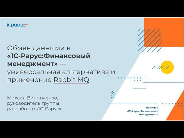 Запись вебинара на тему "Обмен данными в «1С‑Рарус:Финансовый менеджмент» — универсальная альтернатива и применение Rabbit MQ" от 16 августа 2023 года Программа вебинара: 01:08 Концепция обмена и используемые информационные базы 03:40 История появления универсального обмена 04:39 Альтернативные обмены от фирмы «1С» (Enterprise Data и другие) 07:40 Преимущества и ограничения универсального обмена от «1С-Рарус» 09:20 Обмен данными между «1С:Бухгалтерия» и «1С-Рарус:Финансовый менеджмент» 19:50 Установка и настройка брокера сообщений RabbitMQ 32:02 Отправка и чтение сообщений между базами при помощи брокера сообщений RabbitMQ 40:32 Перспективы развития универсального обмена 42:13 Особенности переустановки и обновления RabbitMQ