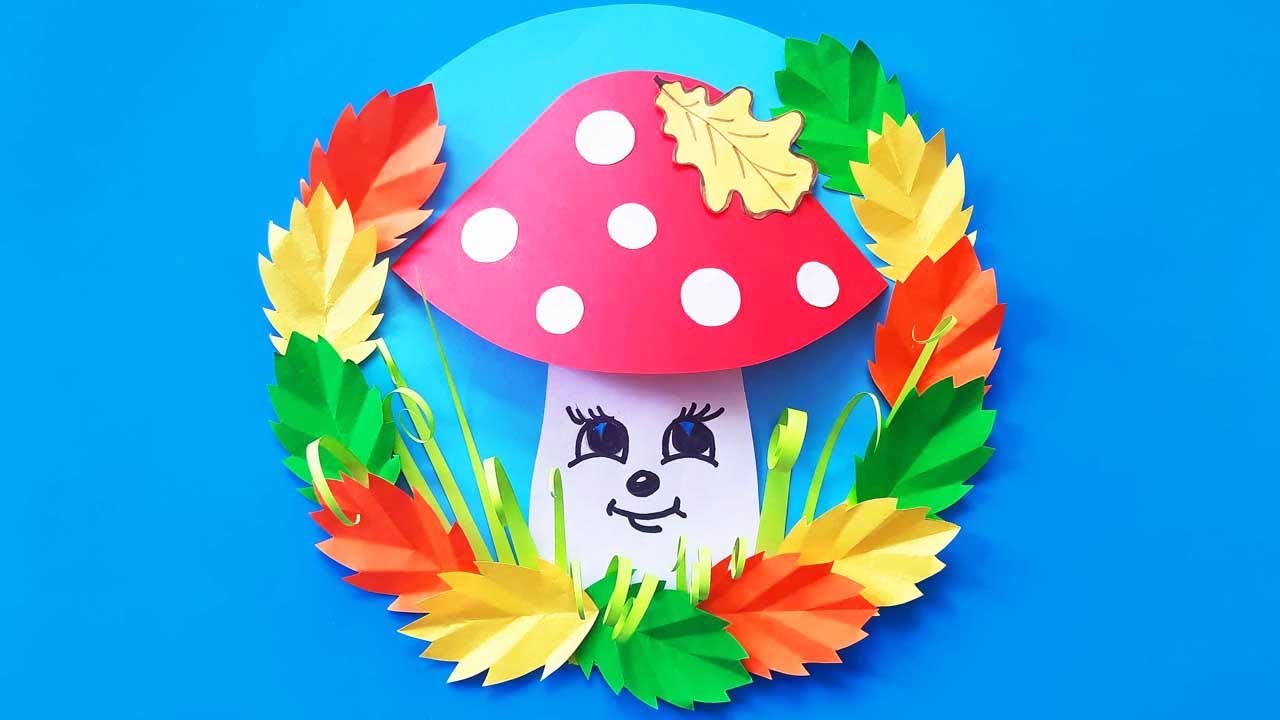 Аппликация гриб Мухомор из цветной бумаги. Осенние поделки для детей в школу и садик.