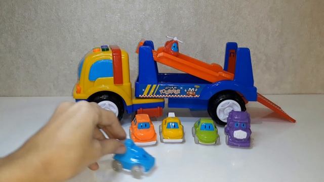 Детская машинка музыкальный автовоз My friends Let's play together с пятью маленькими машинками и вертолетом (обзор).