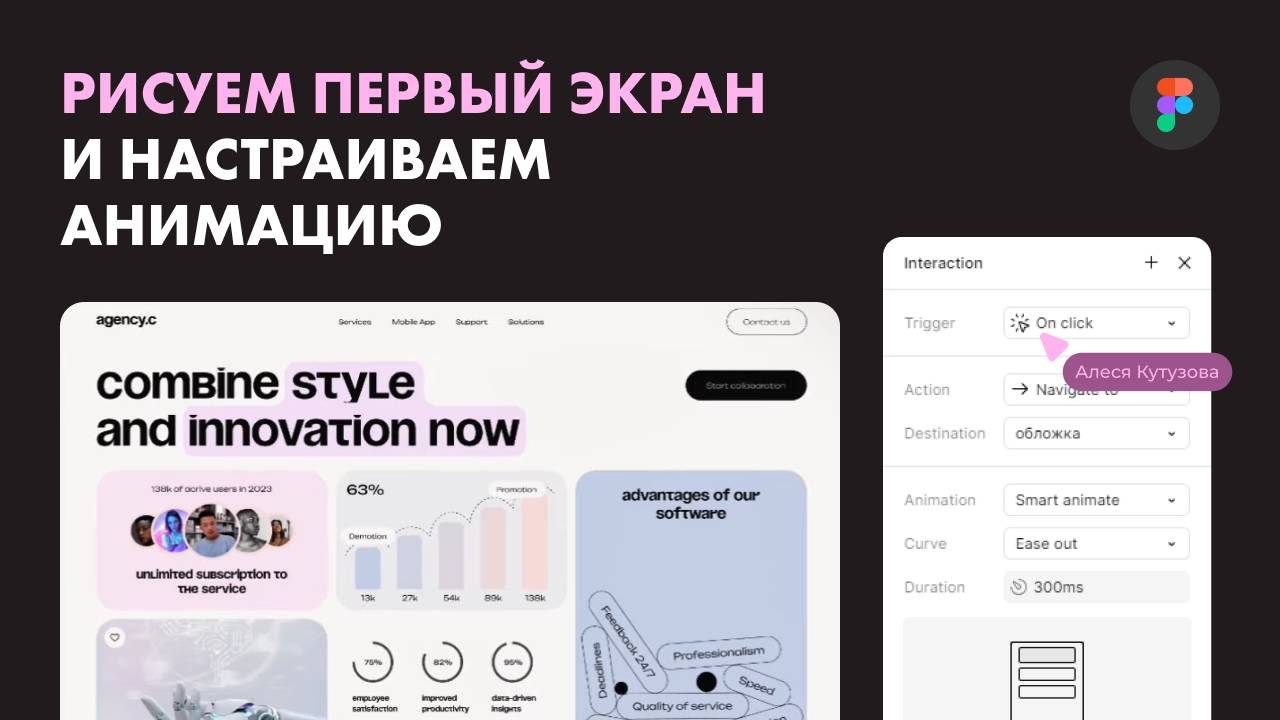 В этом уроке мы рисуем первый экран и настраиваем анимацию Скачать фигму https://www.figma.com/downloads/ ► Запись на 6 поток https://kutuzova-webdesign.ru/ ► Мои соц. сети: Instagram: @kutuzova_alesya ( / kutuzova_al. . ) Телеграм-канал для скачивания ресурсов: https://t.me/kutuzova_webdesign Pinterest: @kutuzova_alesya Кейсы моих учеников: https://www.behance.net/kutuzova_team Мой Behance: https://www.behance.net/alesyafavofeac Связаться по поводу разработки сайта: https://t.me/kutuzova_ales #вебдизайн #фигма #вебдизайнер #дизайнсайта