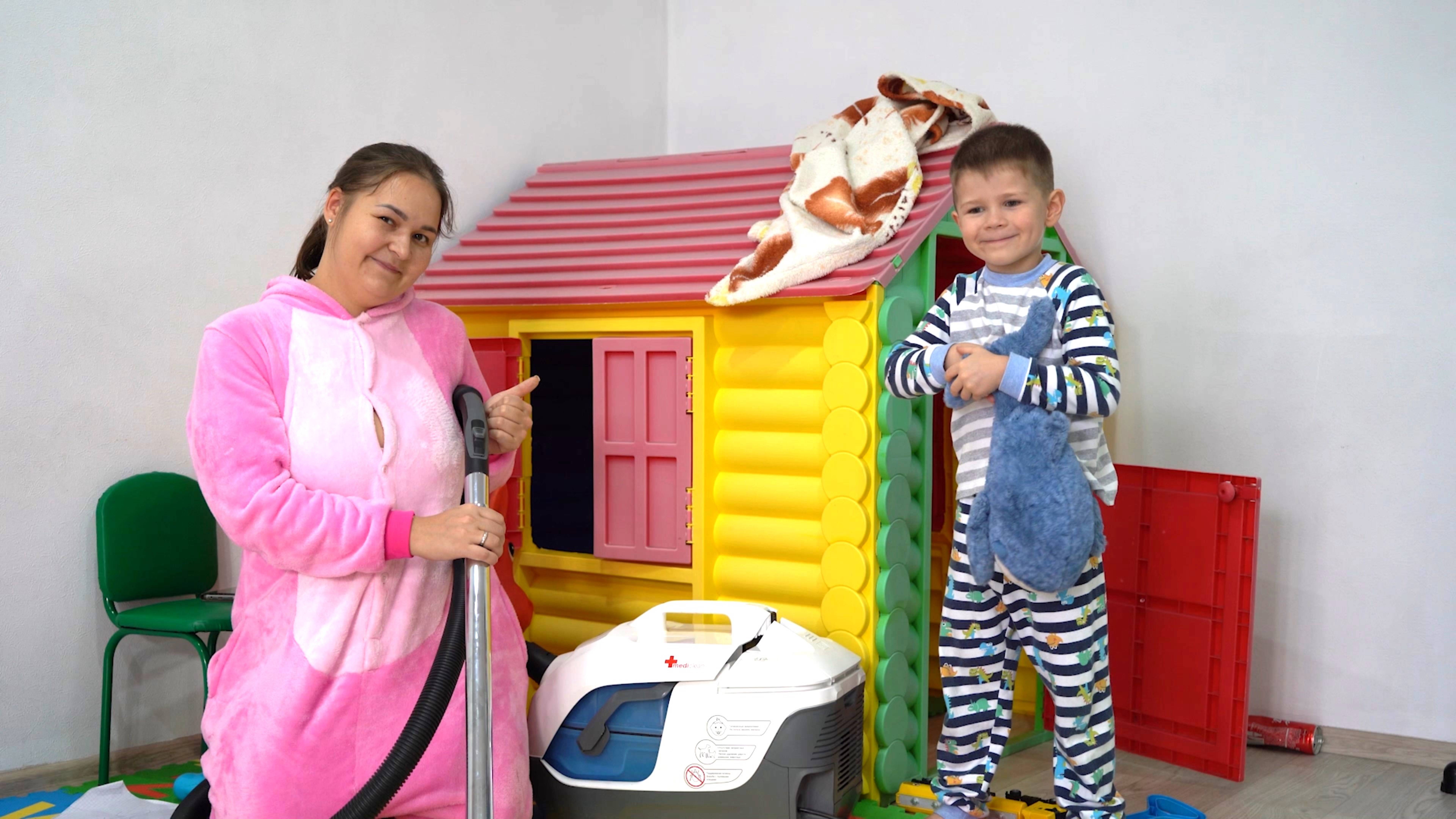 9 Ребенок помогает маме убираться в доме готовит суп