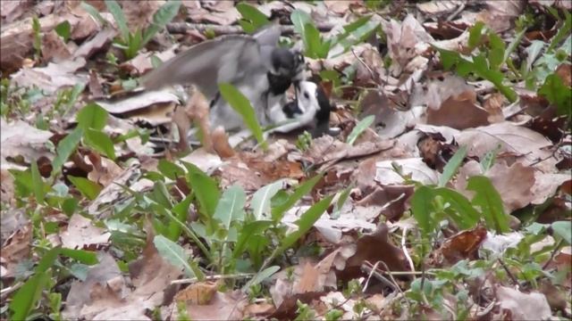 драка двух трясогузок, клинч, наблюдение птиц в Великом Новгороде 22 апреля 2023