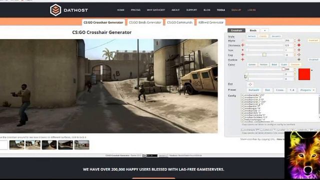 Сайт http://tools.dathost.net #alpha=200/color=5/color_b=50/color_r=50/color_g=250/dot=0/gap=0/size=5/style=4/usealpha=1/thickness=0.5/outline=0/outline_draw=0