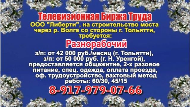 Вакансии и телефоны прямых работодателей в специализированной программе по трудоустройству "Телевизионная Биржа Труда" - г.САМАРА, г.ТОЛЬЯТТИ