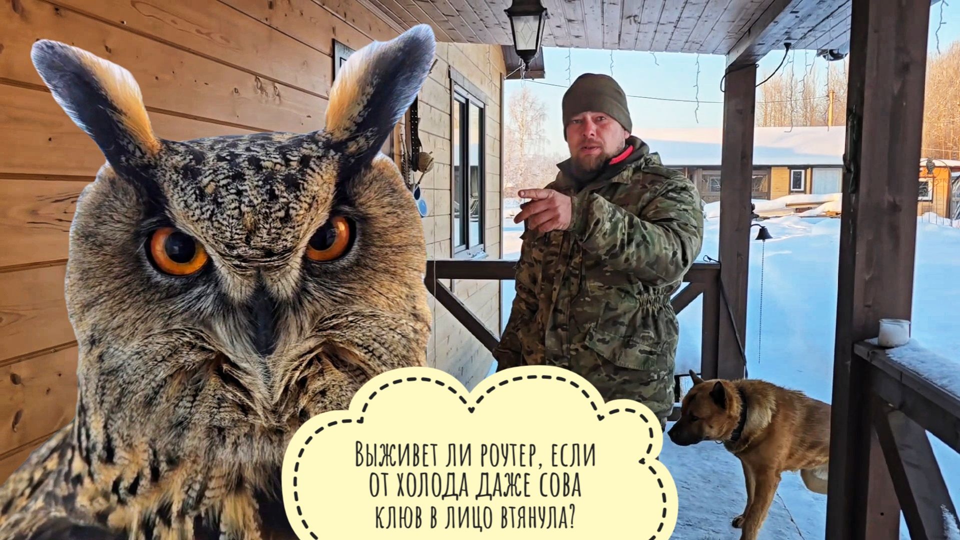 Снегирь с ПТСР? Мороз на улице,а мы тестируем антенну для роутера. Совы готовятся ночевать на морозе