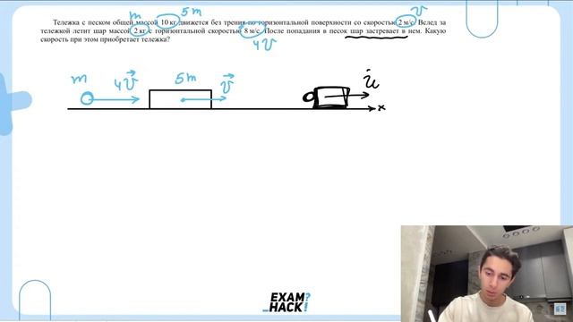 Тележка с песком общей массой 10 кг движется без трения по горизонтальной поверхности со - №26045