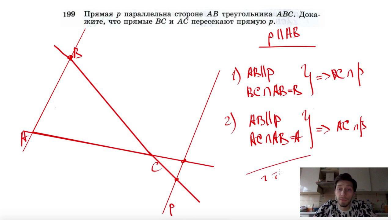№199. Прямая р параллельна стороне АВ треугольника ABC. Докажите, что прямые ВС и АС пересекают прямую р. Поддержать канал рублём - 5469400944002125 (Сбербанк) Мой второй канал для подготовки к ЕГЭ и ОГЭ - https://www.youtube.com/ЕвгенийСумин Инстаграм - https://www.instagram.com/EGE_OGE.math Личный инстаграм - https://www.instagram.com/ee_sumin VK - https://vk.com/evgeniysumin FB - https://www.facebook.com/EvgeniySumin