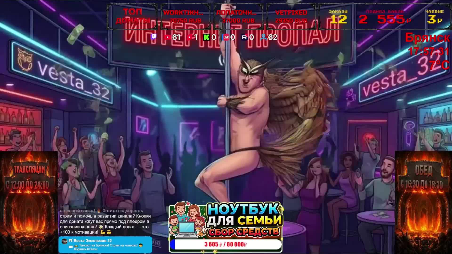 🌟 ПОДДЕРЖКА И ДОНАТЫ 🌟 💳 RUB (Карты РФ): https://ihaqdonate.com/d/vestaexclusive32 💶 Валюта (USD/EUR): https://new.donatepay.ru/@1439937 🎁 DonationAlerts: https://www.donationalerts.com/r/vestaexclusive_32 ━━━━━━━━━━━━━━━━━━ 🎧 ЗАКАЗАТЬ МУЗЫКУ 👉 Выбрать трек: https://trula-music.ru/donate/vesta_32/twitch/ ━━━━━━━━━━━━━━━━━━ ❄️ ПРАЙС НА ДВИЖУХУ ❄️ Хочешь движа? Я продаюсь. Оплачивай мой позор. 🤸 ПОДВИГАТЬСЯ: 🍎 500 ₽ = 10 приседаний 🍏 1000 ₽ = 10 отжиманий 🌨 УЛИЧНЫЙ ТРЭШ: ❄️ 600 ₽ = Снежки с пассажиром 📸 1000 ₽ = Танец перед камерой (дорожной) ⭐️ 2000 ₽ = Упасть «звёздочкой» в сугроб 🍻 АЛКО-МЕНЮ (ЗАКАЖИ КОНТЕНТ): 🍺 «Просто бухануть» — 15 000 ₽ (Душевный вечер) 🚀 «В говно» (Double Pack) — 25 000 ₽ (День бухла + день похмелья) 🧖♂️ «Пивной десант в сауне» — 30 000 ₽ (Пена, пар и разговоры) 🔥 «VIP Грязь» — 35 000 ₽ (День в сауне + день рехаба)