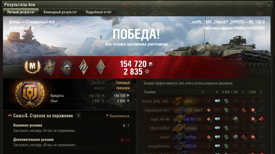 ШТИЛЬ МАСТЕР на Об. 156 0 ОПЫТ: 1717 СУММАРНЫЙ УРОН: 7759