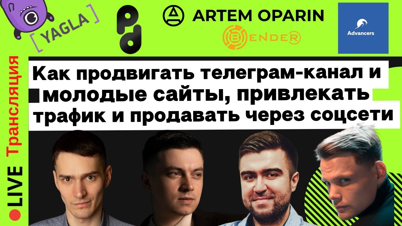 Тема: "Как продвигать телеграм-канал и молодые сайты, привлекать трафик и продавать через соцсети". В программе: 1. Как продвигать телеграм-канал, Тимур Тахаутдинов — BendeR; 2. Что нужно малому бизнесу, чтобы продавать через социальные сети, Вадим Чигрин — Advancers; 3. Прототипирование и продвижение молодых сайтов в 2022 году, Артём Опарин — Artem Oparin; 4. Как привлекать максимально дешевый трафик для инфобизнеса из Instagram в подписную базу или подписчиков в профиль и продавать свои курсы без вебинаров, Максим Бушмелев — BUSH.PRO. ✅ Записаться на курс по эффективному привлечению клиентов из Вконтакте, YouTube и Tik-Tok «Большой таргет»: https://institute.yagla.ru/target Повышайте отдачу от контекстной рекламы с помощью сервиса Yagla -﹥ https://yagla.ru/ Добавляйтесь в наши социальные сети: VK -﹥ https://vk.com/multilanding YouTube -﹥ https://www.youtube.com/c/YaglaRuOnline Telegram -﹥ https://t.me/yagla