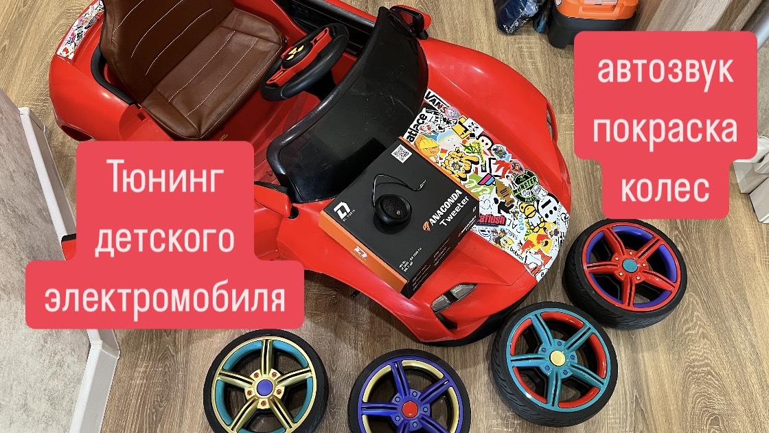 Установка твиттеров DL Audio Anaconda в детский электромобиль Подготовка детского электромобиля к сезону 2025 Покраска колес детского электромобиля в разные цвета Разноцветные колеса в стиле VW Harlikin