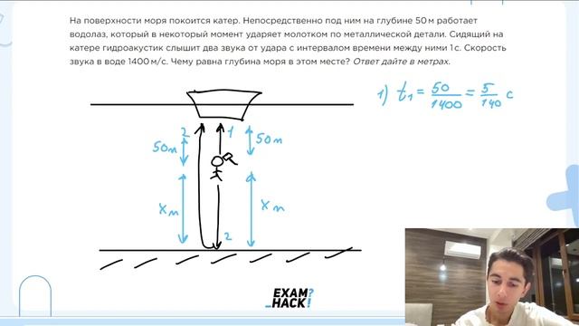 На поверхности моря покоится катер. Непосредственно под ним на глубине 50 м работает - №23091