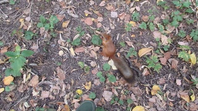 Белки и бананы, а ещё на меня в первый раз залезла белка