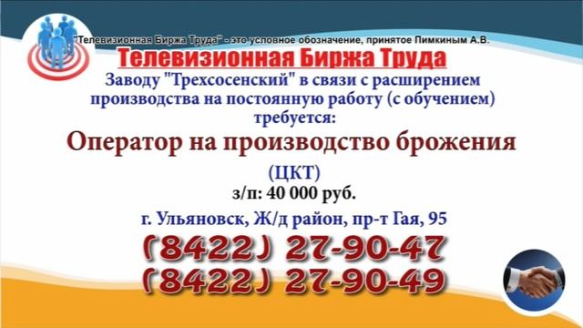 Вакансии и телефоны прямых работодателей в специализированной программе по трудоустройству "Телевизионная Биржа Труда" - г.Ульяновск