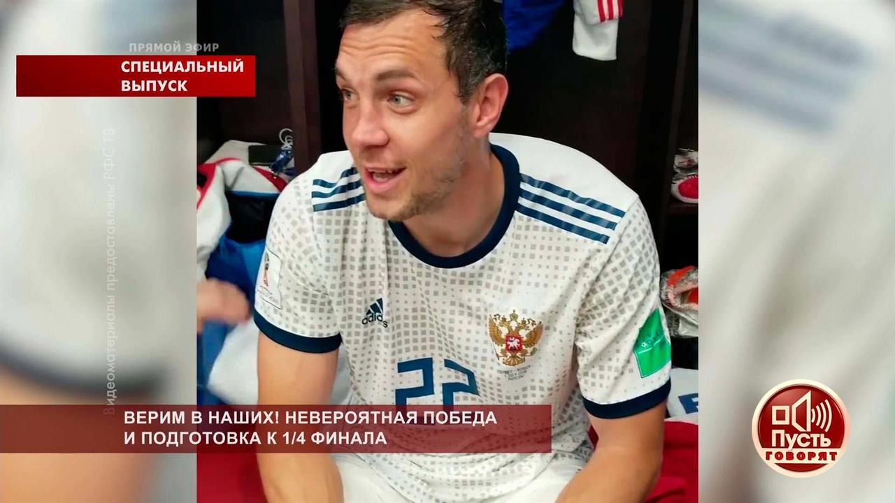 Сборная России одержала фантастическую победу в матче 1/8 финала Чемпионата мира по футболу FIFA 2018 в России™. Впервые в истории российской сборной футболистам удалось пробиться в четвертьфинал мирового первенства. Переживем эти эмоции еще раз в студии "Пусть говорят" и обсудим с футбольными экспертами, к чему стоит готовиться россиянам в матче со сборной Хорватии.