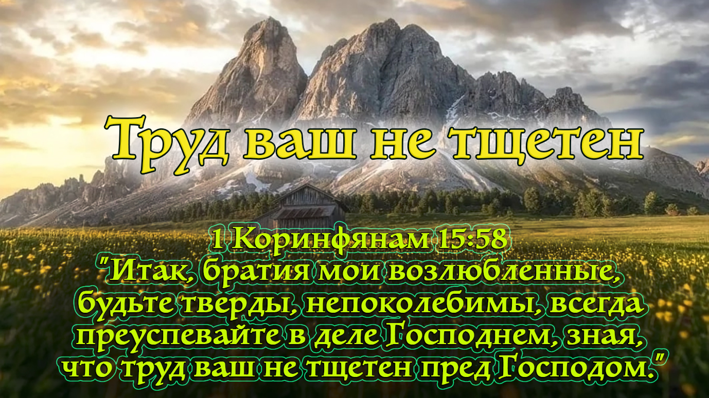 1 Коринфянам 15:58 "Итак, братия мои возлюбленные, будьте тверды, непоколебимы, всегда преуспевайте в деле Господнем, зная, что труд ваш не тщетен пред Господом."