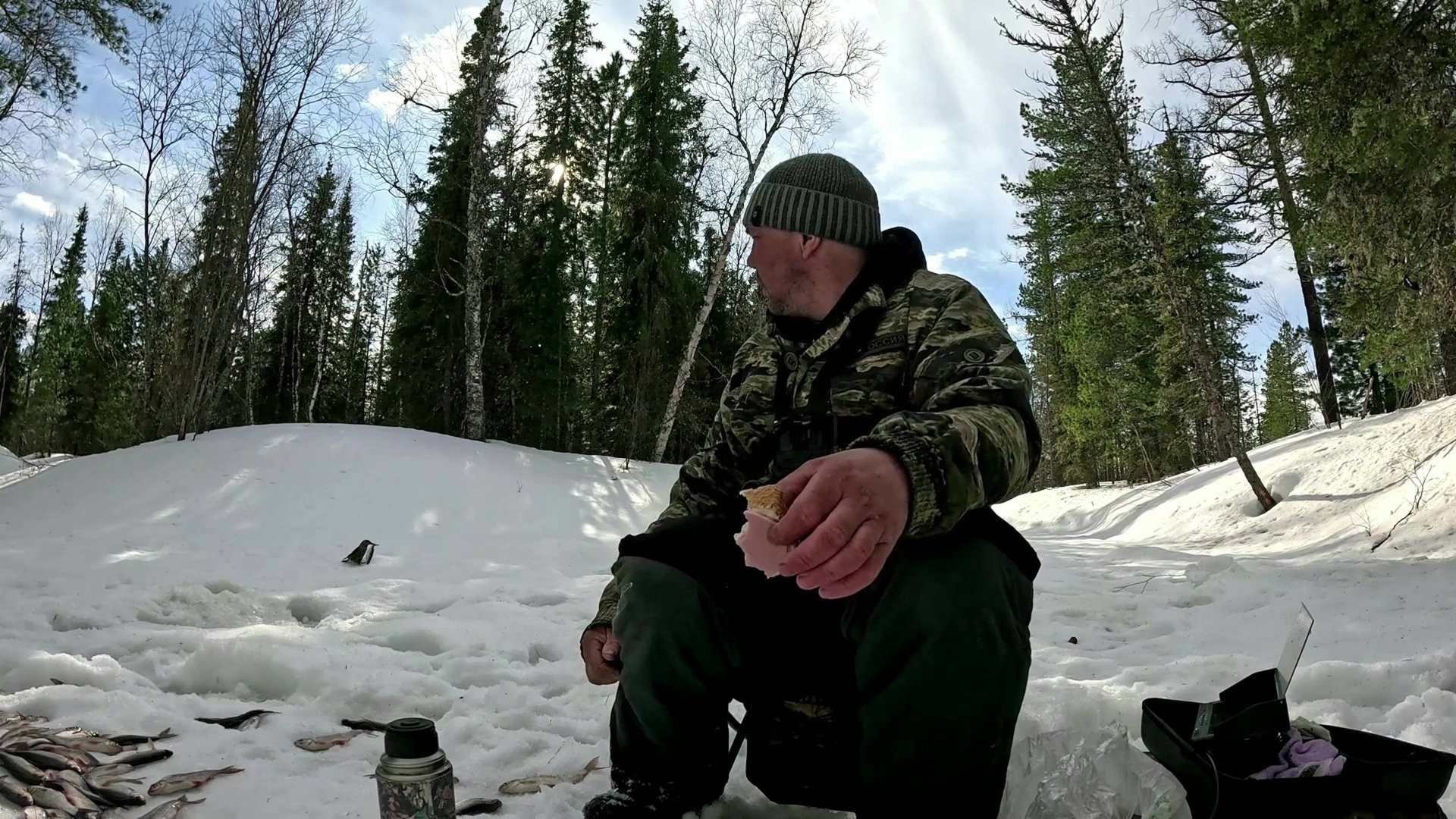Опустил камеру под лёд и был в шоке от количества там рыбы. Рыбалка на красивой таёжной речушки.