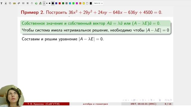 Приведение кривых второго порядка к каноническому виду и построение